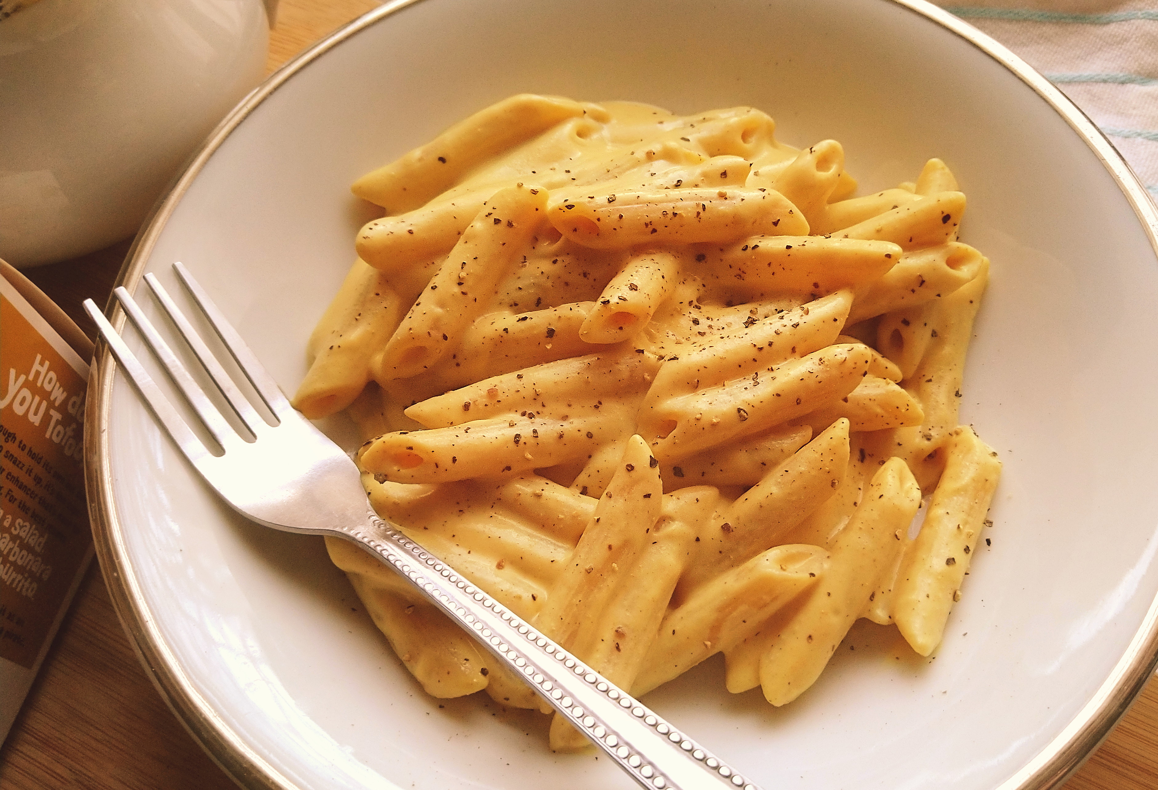 Just heat it up and it’s ready to go. I heated some up in the microwave and stirred it through penne