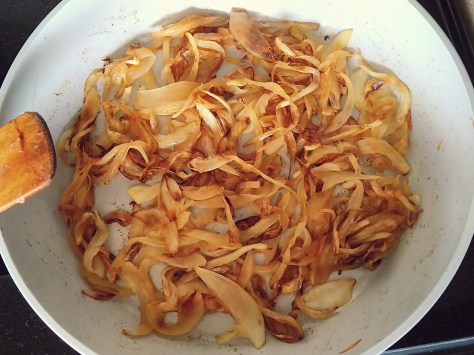 - One large brown onion, peeled and thinly sliced, from root to tip