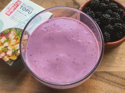 - Once the berries are frozen you can make the milkshake. Start by adding the silken tofu, soy milk, golden syrup and vanilla extract into a blender, then blend until completely smooth