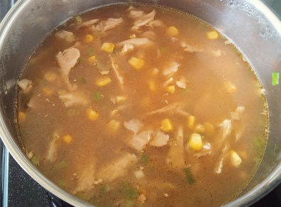 - Now add in the drained sweetcorn and stir it through the soup, replace the lid and give it another five minutes for the sweetcorn to heat through