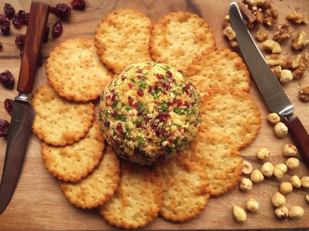 Serve the cheese ball with pretzels, crackers, breadsticks or vegetable sticks. It’s also lovely served with warm slices of lightly toasted bread