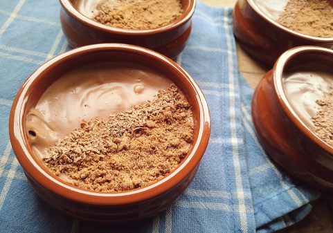 - Blend the mixture until it’s completely smooth and fully combined. Pour the mixture into six dishes and leave to set in the fridge for at least three hours