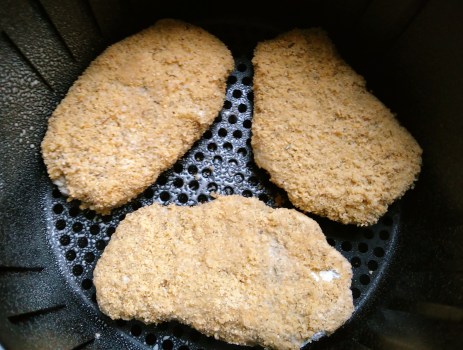- Now the fillets are ready to air-fry. Place them into an air fryer basket and spray them with a few sprays of spray cooking oil