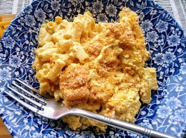 - Air-fry at 180°C for ten minutes. Alternatively oven bake the macaroni at 200°C/180°C fan-assisted for 20-25 minutes, or until the breadcrumbs on top go crispy