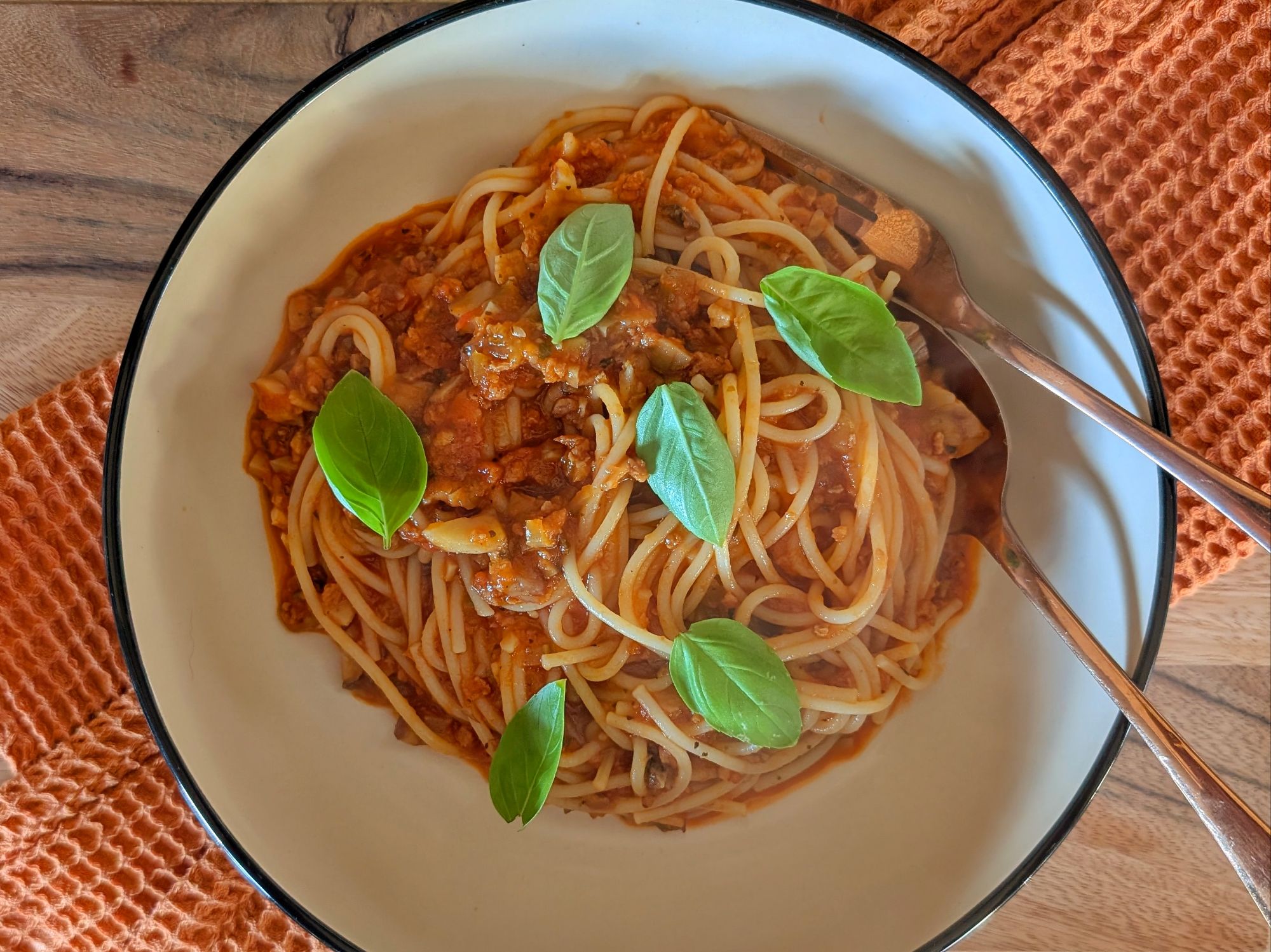 - Finally stir the bolognese through cooked spaghetti and then serve