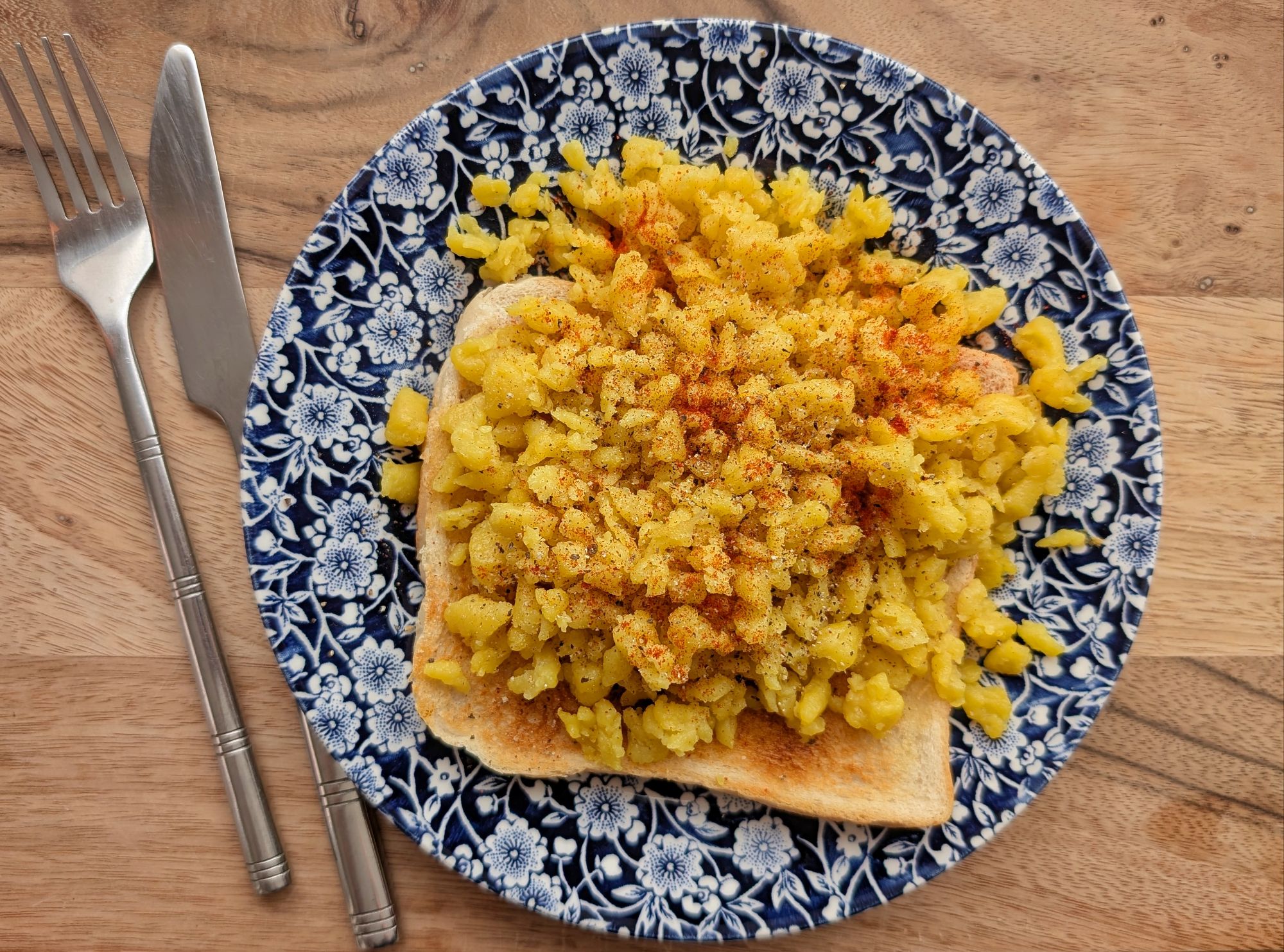 • Once cooked, season with the kala namak and then serve. I like to top mine with black pepper and smoked paprika, but that’s just a personal preference
