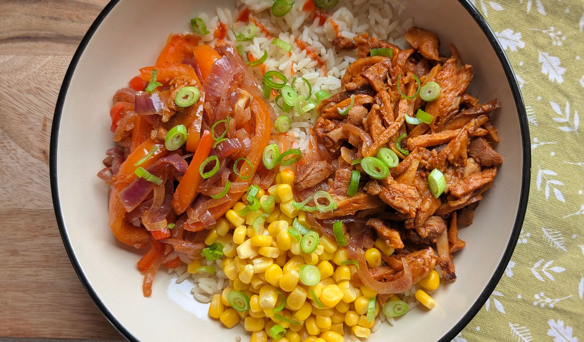 I chose to serve mine with some rice, fried red peppers, fried red onion and sweetcorn. I also added some to a cheese toastie which worked really well too