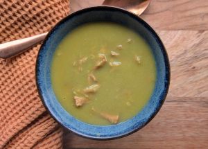 - Add in the peas to the soup and give them a stir, give them around five minutes to cook. Once they’re cooked, blend the soup until it’s beautifully smooth