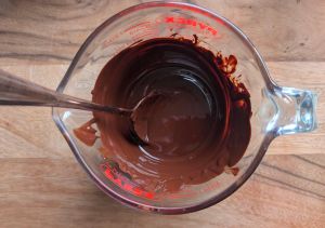 - Begin by melting the chocolate. I did this by popping it into a microwave safe jug and microwaving on half power until melted. Be sure to remove the jug from the microwave every now and then, and give the chocolate a really good stir