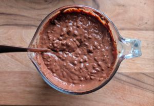 - Once the chocolate is fully melted, add the silken tofu and blend it with a blender until it’s fully combined